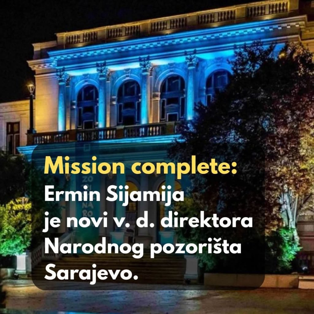 Vlada Kantona Sarajevo je na današnjoj sjednici imenovala glumca Ermina Sijamiju za vršioca dužnosti direktora Narodnog pozorišta Sarajevo. Ovo imenovanje je najvećim dijelom zasluga Sindikata srednjeg i visokog obrazovanja, odgoja, nauke i kulture BiH – Kantonalni odbor Sarajevo a posebno dopredsjednika Adnana Đinde.U trenucima u kojima je bilo pitanje dana kada bi nastupila potpuna blokada jedne od najvažnijih institucija kulture u Bosni i Hrecegovini, Sindikat je svojim kontinuiranim i upornim djelovanjem prema najodgovornijim – Upravnom odnoru NPS, Ministarstvu kulture i sporta i na kraju Vladi Kantona Sarajevo, ponudio precizne korake u rješavanju ove krize, koje su odgovorni na kraju ispunili. Čestitamo novoizabranom vršiocu dužnosti direktora sa željom da Narodno pozorište u Sarajevu nastavi biti perjanica kulture u Bosni i Hercegovini.