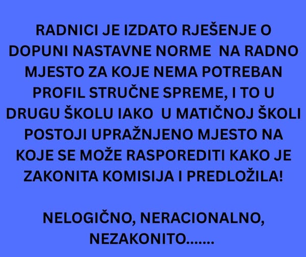 Direktor škole ne može zaključiti ugovor o radu na neodređeno sa radnikom koji ne posjeduje odgovarajući profil...